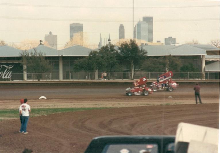 | The OKC race with downtown in the background, and the #3 car of Danny Smith #18 of Brad Doty. I believe this was in 1986. |