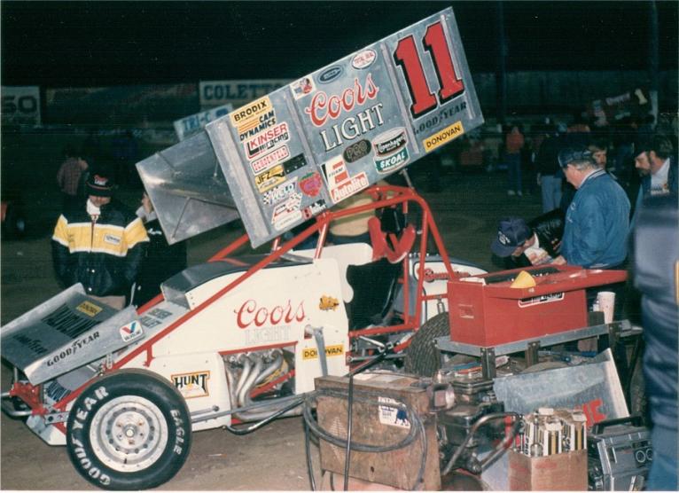 | The amazing & incredibly popular Doug Wolfgang. I took this picture in the pits before one of the last WoO races at Ascot Park. I believe it was in 1986. |