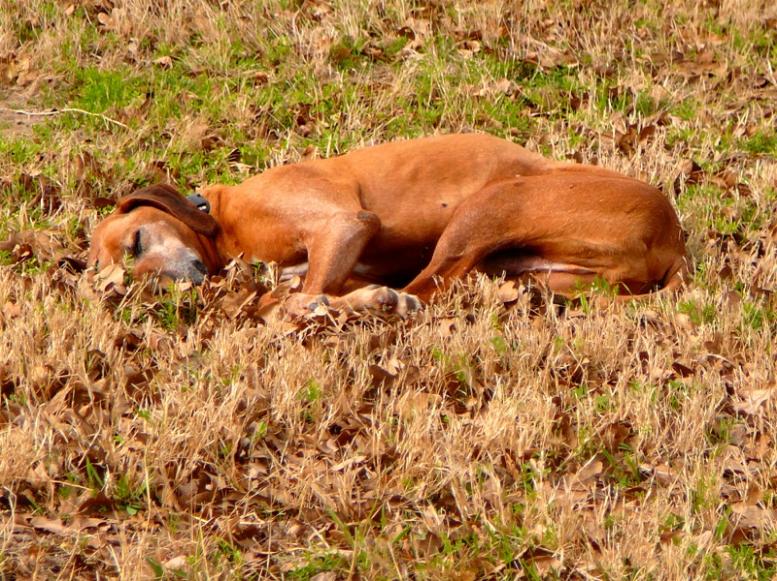 in his back yard, watch the wind blowing in the grass...and keep and eye on us as we come and go through